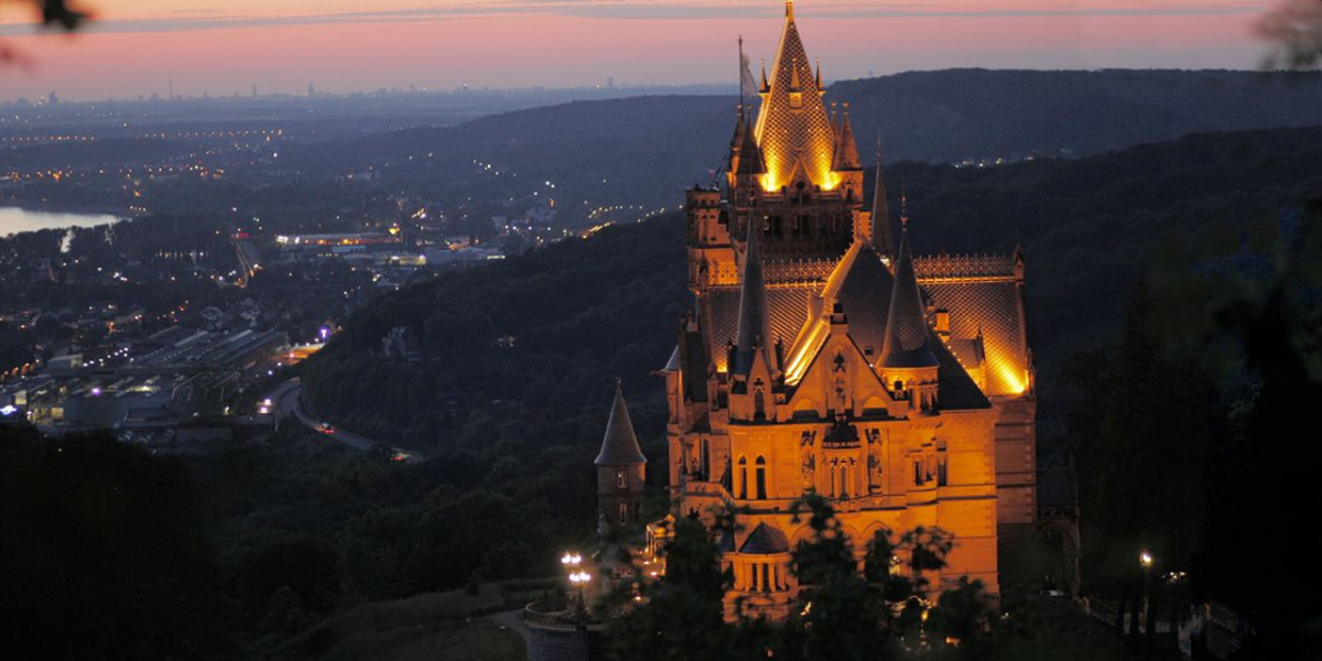 Sie wollten schon immer einmal sehen, wie sich das Schloss mit der Dunkelheit verändert und welche Geschichten hinter den alten Steinmauern stecken? Dann begeben Sie sich gemeinsam mit Peter Wendland auf eine "verzauberte Reise durch die Geschichte" von Schloss Drachenburg.