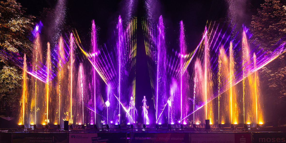 Gigantic fountains made up of billions of water droplets shooting over 30 metres into the night sky, a fascinating play of colours created by light and laser effects, brilliant music ranging from classical to pop, and fiery pyrotechnic accents: The Klangwelle Bad Neuenahr-Ahrweiler combines the elements of water, fire, lasers, light and music into a unique mega show that will give you goosebumps.