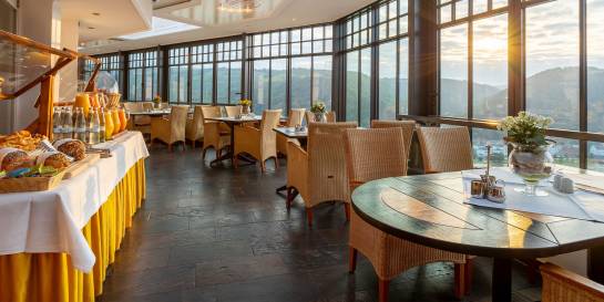 In dem Restaurant und auf der Terrasse wird eine regionale und saisonale Küche serviert. Die Rohprodukte für die Küche bezieht das Hotel von Bauern, Jägern und Anglern aus dem Hunsrück.